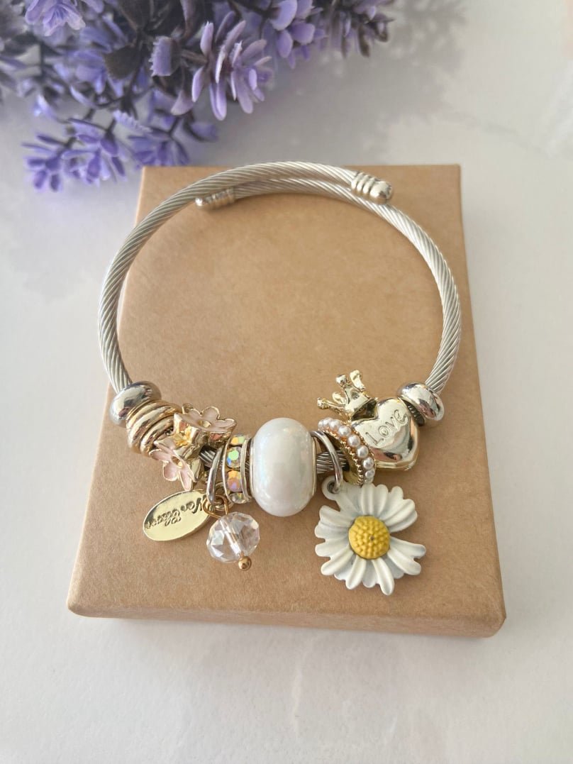 Charm Beyaz Papatya Detaylı Bileklik